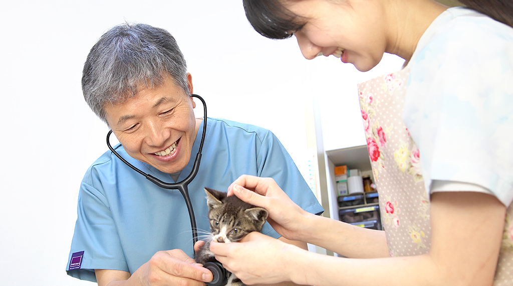 病気のペットに、今何をしてあげられるかをご説明し、飼い主様からの疑問や質問を十分お聞きし、納得して頂いたうえで検査、治療、手術を行い、場合によっては高度医療施設などへのご紹介もさせて頂いております。