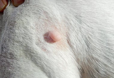 左前肢の肘部にできた約1.0cmの腫瘤です。