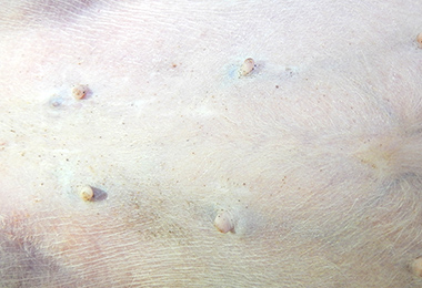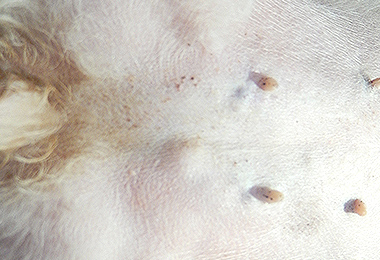 体表上のイボ(腫瘤)の蒸散切除は殆どの場合、局所麻酔にて短時間で処置が可能です。高齢のワンちゃんや全身麻酔のリスクがあるワンちゃんに対し、体の負担が少ない治療です。イボ(腫瘤)の大きさによっては複数回に分けて、治療を行うことがあります。